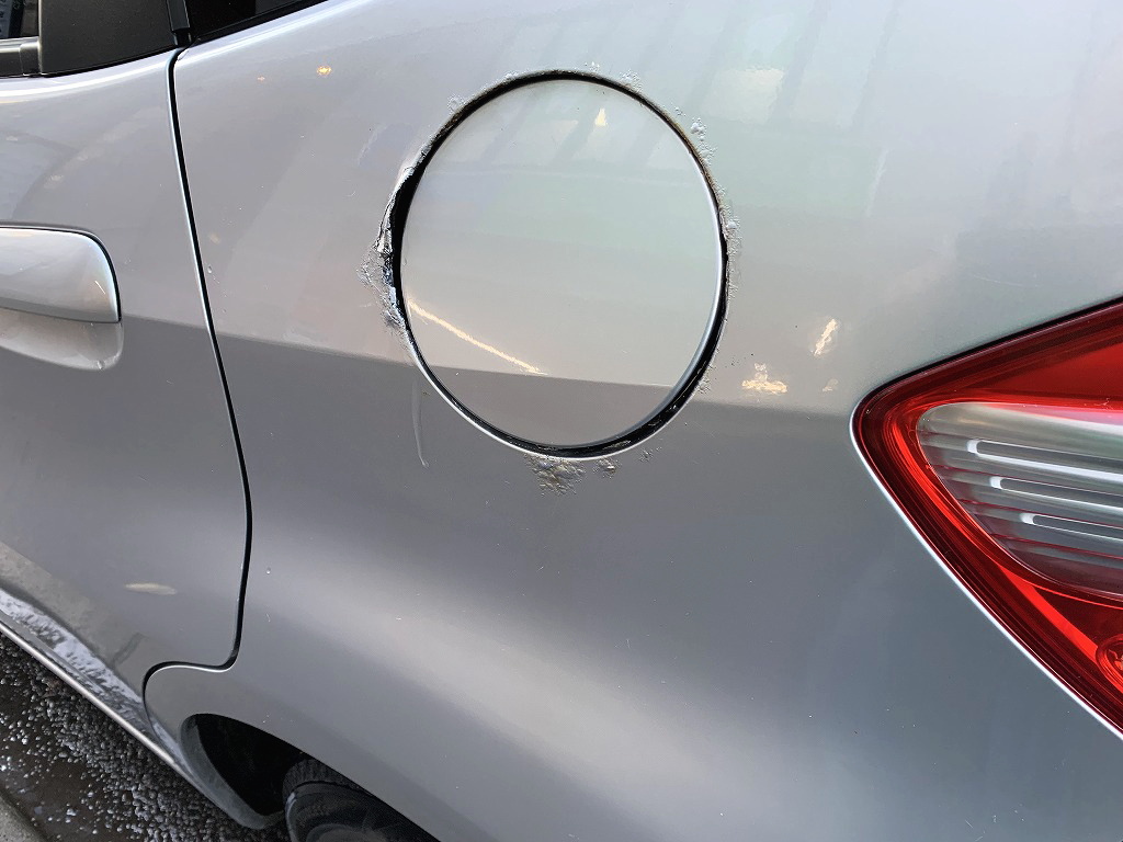 ガソリン給油口および一部下回りにサビがあるためアウトレットです。給油口の周辺が劣化しており開閉に難がございます。