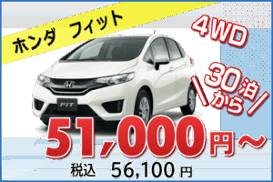 長期のご利用に無駄のないスタイルとして1ヵ月からのプランをご用意。 観光、ビジネス、事故代車などお気軽にどうぞ。 車種はホンダフィットの禁煙車になります。